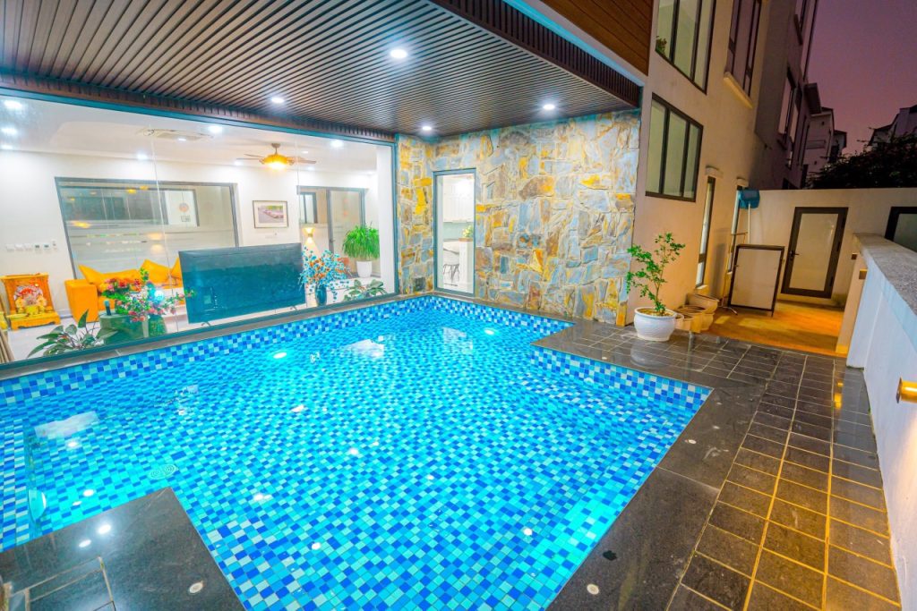 • Villa bể bơi rộng, có mái che, phù hợp với trẻ em.