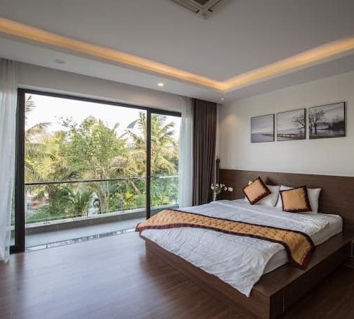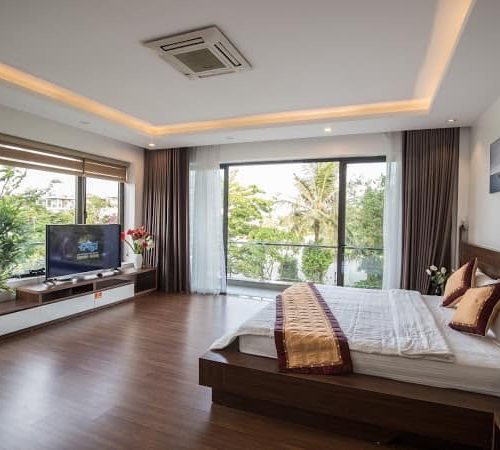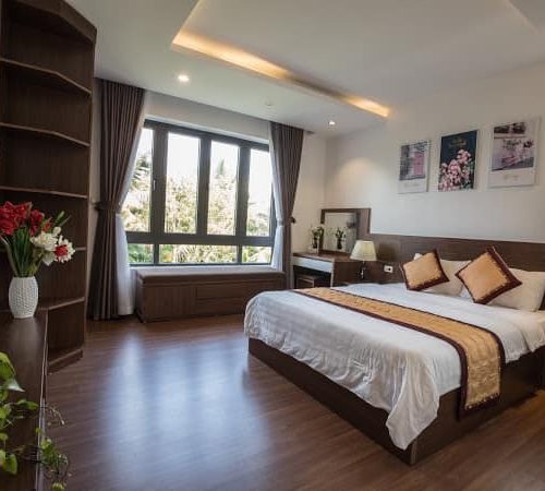 - 06 phòng ngủ vs khép kín, thiết kế hiện đại, rộng từ 18m2-35m2, lát sàn gỗ, mỗi phòng có 1 giường 1,6-1,8m, kèm 1 đệm phụ, trong đó 3 phòng có thêm văng đọc sách có thể ngủ trên văng!