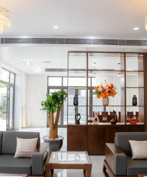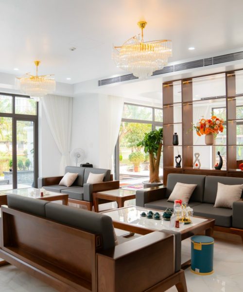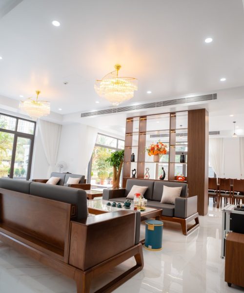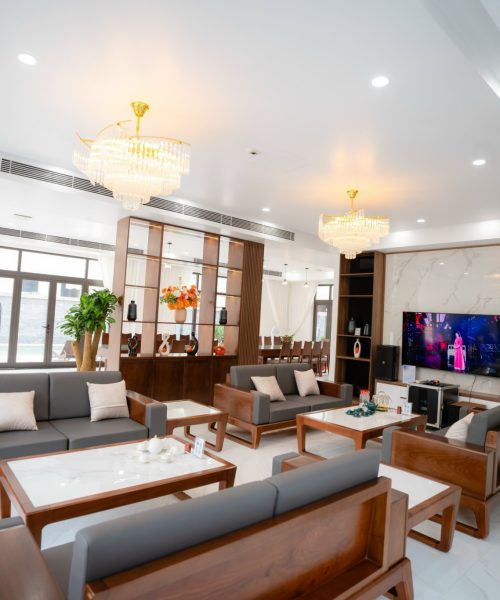 - Phòng khách đầy đủ tiện nghi: sofa, bàn trà, smart TV, karaoke, điều hoà.