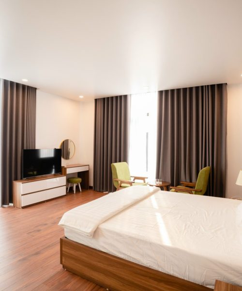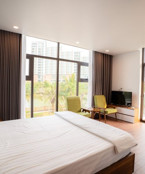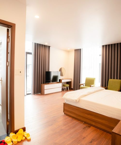 - Mỗi phòng đều được trang bị điều hòa, Smart TV kết nối wifi, máy sấy tóc tiện nghi đầy đủ.