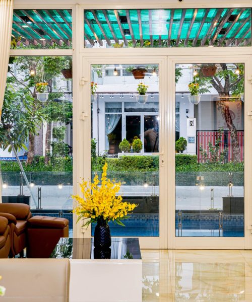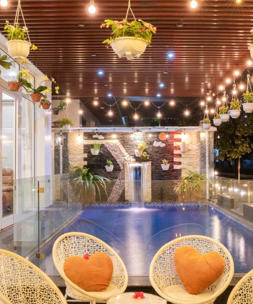 Không gian bên ngoài Villa trang trí Hoa, có xích đu, bàn trà… thêm đèn trang trí, giúp không gian của bạn luôn nổi bật và rực rỡ. Để chuyến đi của khách hàng trọn niềm vui, nhanh tay liên hệ với với chúng tôi để trải nghiệm qua Zalo và số điện thoại: 0344666188