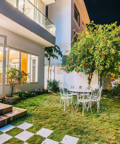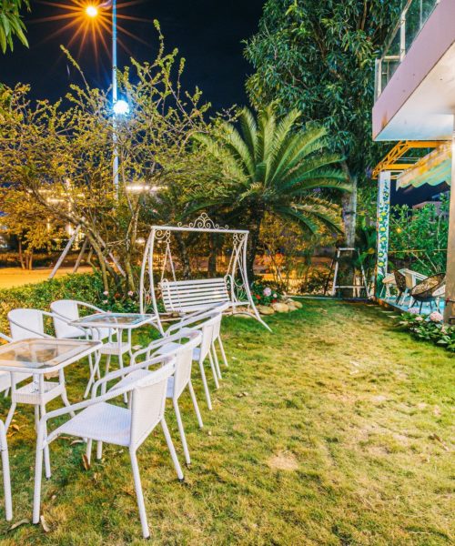 - Sân rộng 70m2 tổ chức BBQ, pool party, đủ tổ chức 20 bàn
