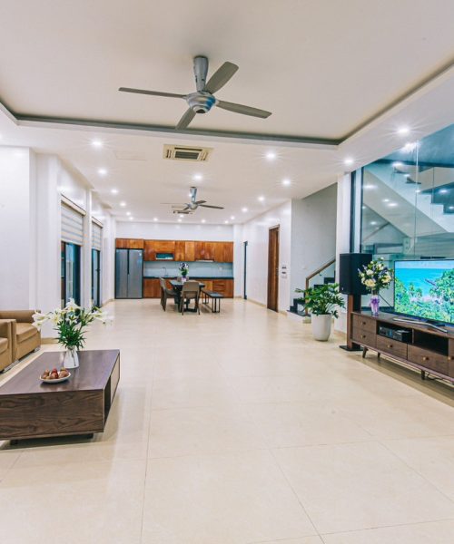 VILLA KT 03 – 04 FLC Sầm Sơn là biệt thự gần sân Bóng, sân Golf, Bể bơi FLC, biệt thự sở hữu không gian phòng khách rộng rãi, phía trước có sân rộng phù hợp cho tổ chức tiệc BBQ, teambuiding…