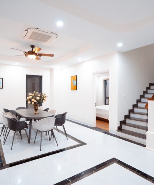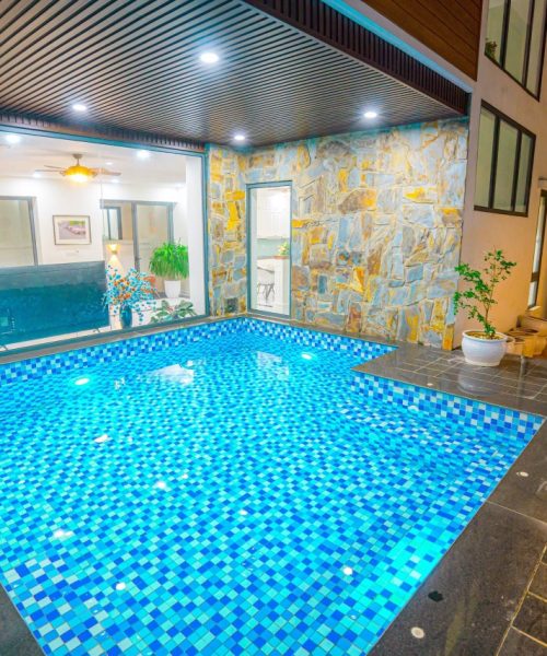 - Đặc điểm : Villa đơn lập, có bể bơi mái che