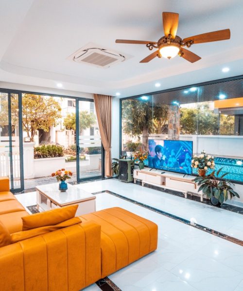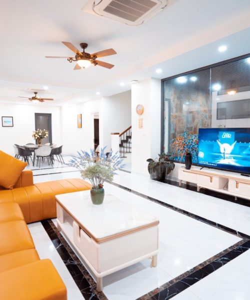 - 1 phòng khách rộng, Tivi 65in, Truyền hình internet Tv, Điều hoà, Wifi, Karaoke