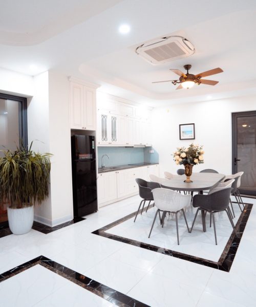 - 1 phòng bếp: có đầy đủ tủ lạnh, bếp từ+ bếp ga. Nồi chảo, Bát đũa, Ấm siêu tốc……