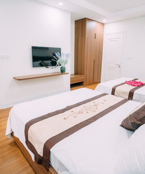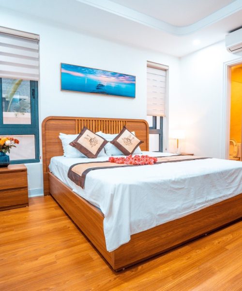 - Số giường : 9 giường ( 7 phòng 1 giường 1m8x2m + 1 phòng 2 giường 1m6x2m ) Có 2 đệm phụ