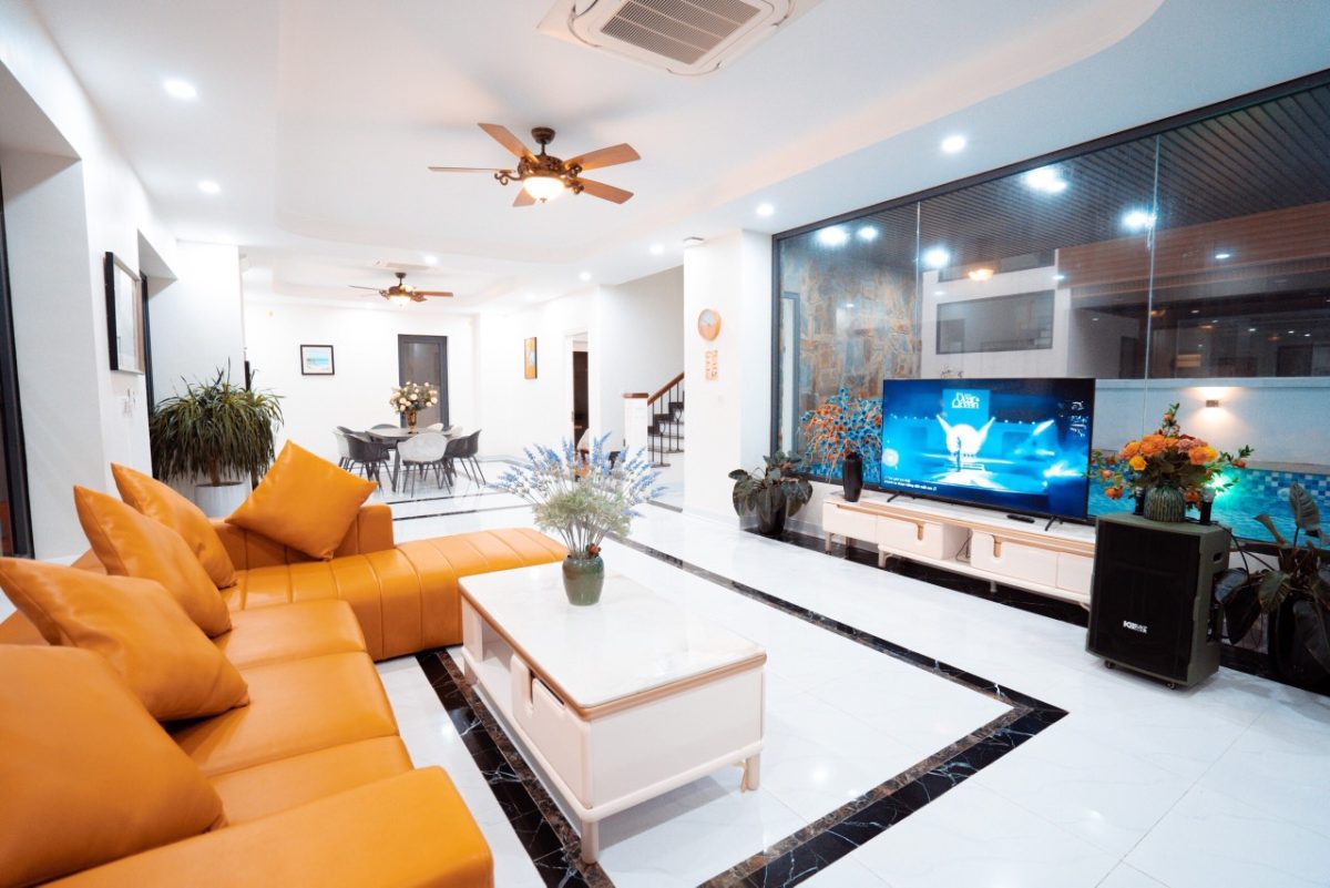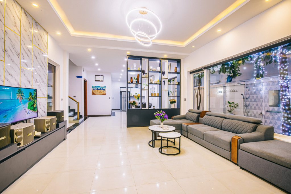 - 1 phòng khách rộng, Tivi 65in, Truyền hình internet Tv, Điều hoà, Wifi, Karaoke