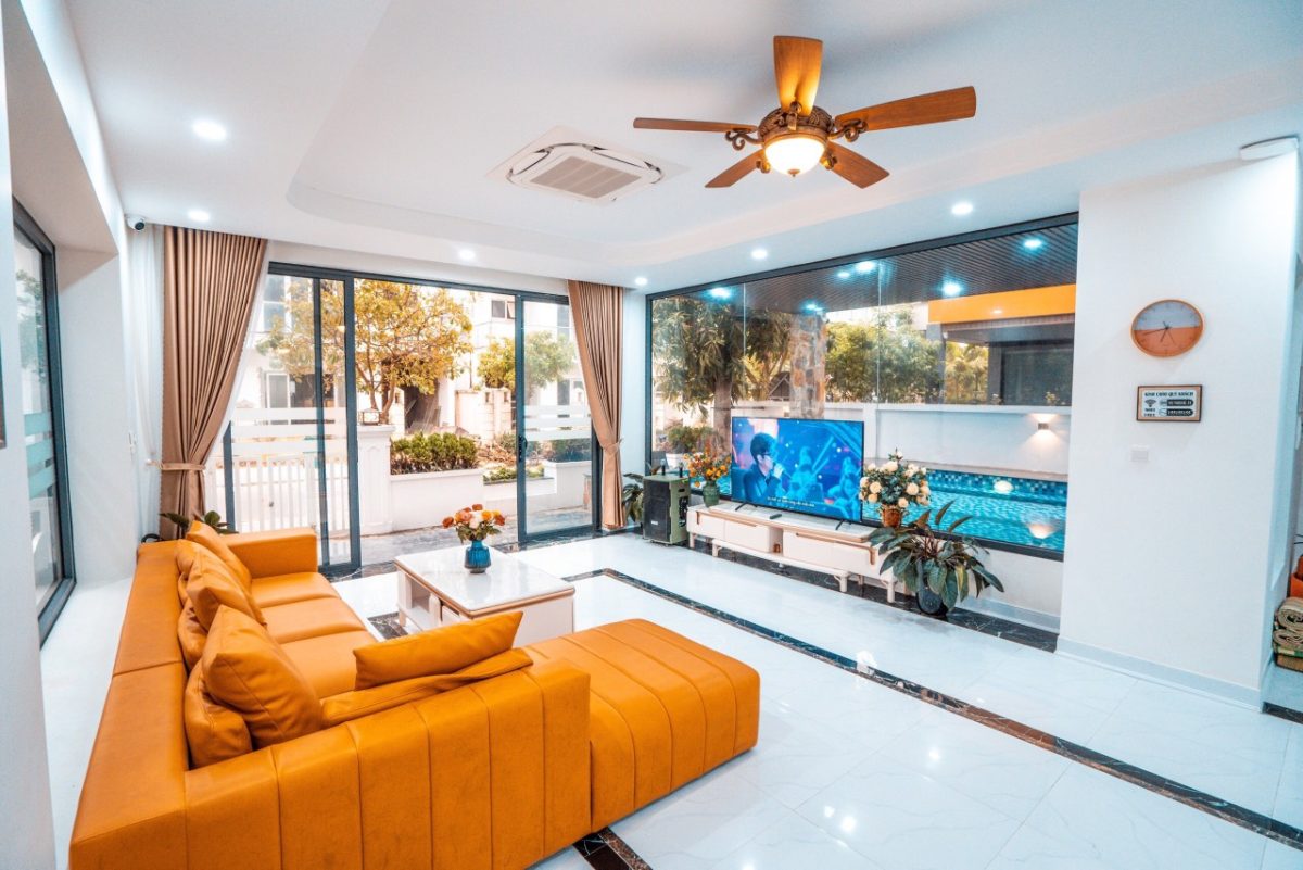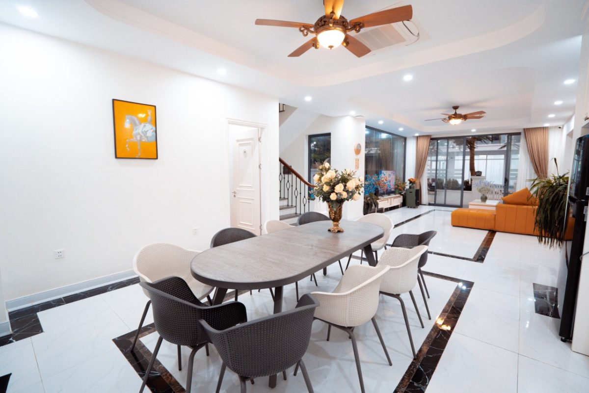 - Đặc điểm : Villa đơn lập, có bể bơi mái che