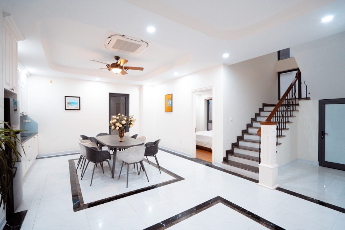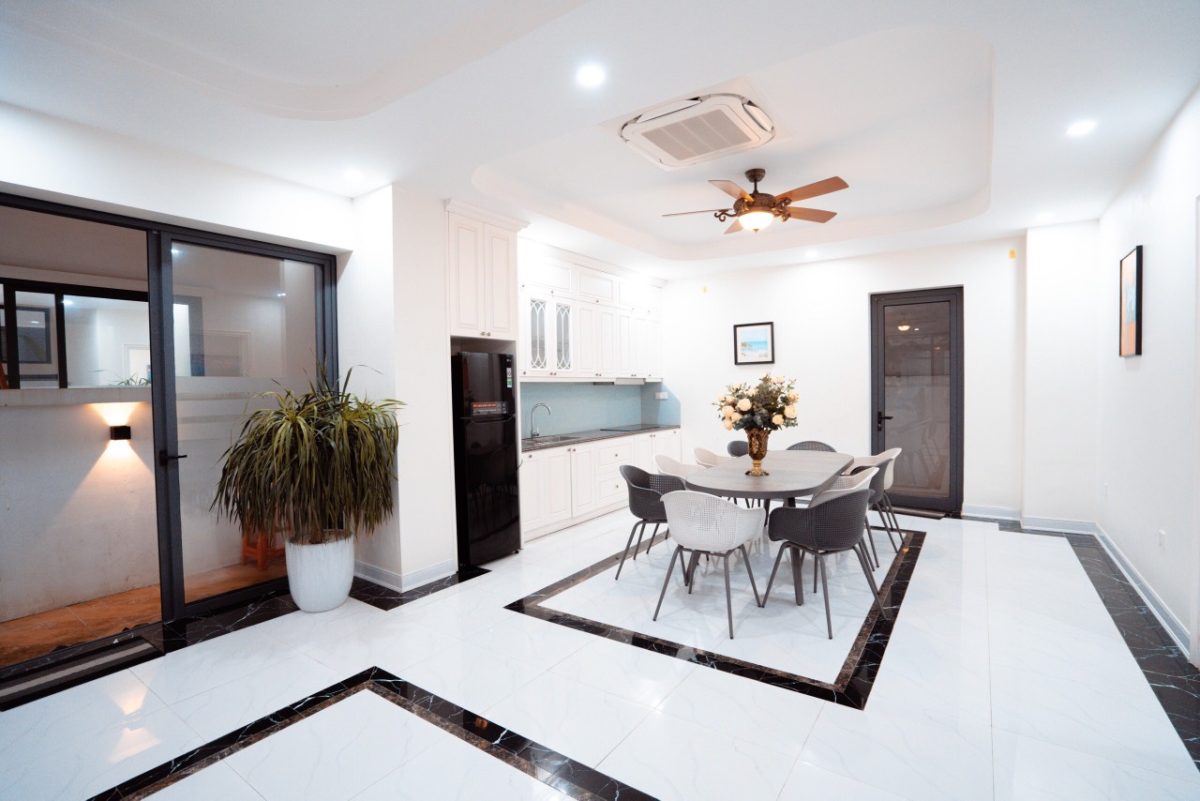 - 1 phòng bếp: có đầy đủ tủ lạnh, bếp từ+ bếp ga. Nồi chảo, Bát đũa, Ấm siêu tốc……
