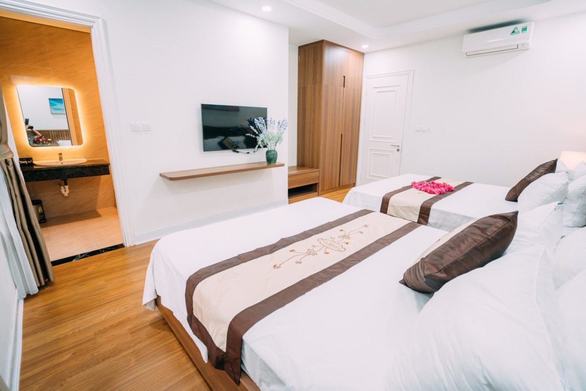 - Số giường : 9 giường ( 7 phòng 1 giường 1m8x2m + 1 phòng 2 giường 1m6x2m ) Có 2 đệm phụ