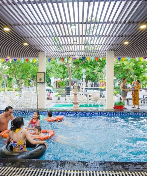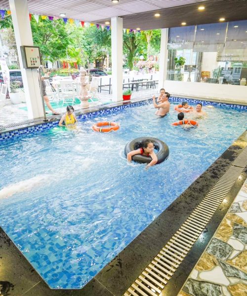 - Bể bơi chung > 40m2 tuyệt đẹp, có mái che