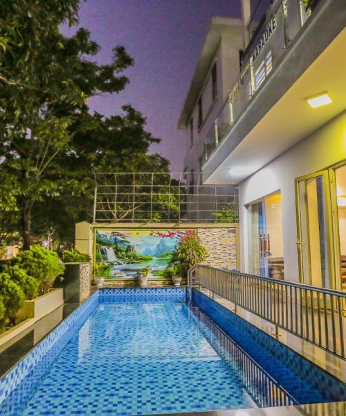 - 8 phòng ngủ (gồm 7 phòng có 1 giường 1m8× 2m4 và 1 phòng có 2 giường khép kín với đầy đủ tiện nghi TV, điều hoà; phòng tắm trang bị nóng lạnh, máy sấy, đồ dùng cá nhân…